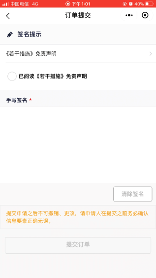 步驟9:訂單提交——確認(rèn)申報(bào)信息,手寫(xiě)簽名