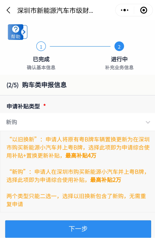 步驟5:購(gòu)車(chē)類申報(bào)信息——選擇申請(qǐng)補(bǔ)貼類型