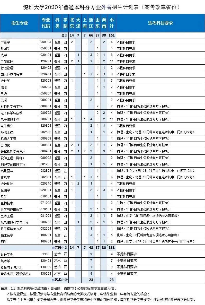 深圳大學2020年面向全國29個?。ㄗ灾螀^(qū)、直轄市)招生,招生總規(guī)模保持不變,總計劃為6750人。增加天津這1個招生省份;增加廣東省外招生計劃;增加金融科技、機器人工程、學前教育(師范)3個招生專業(yè);增加軟件工程(騰班)、心理學(師范)2個專業(yè)方向。