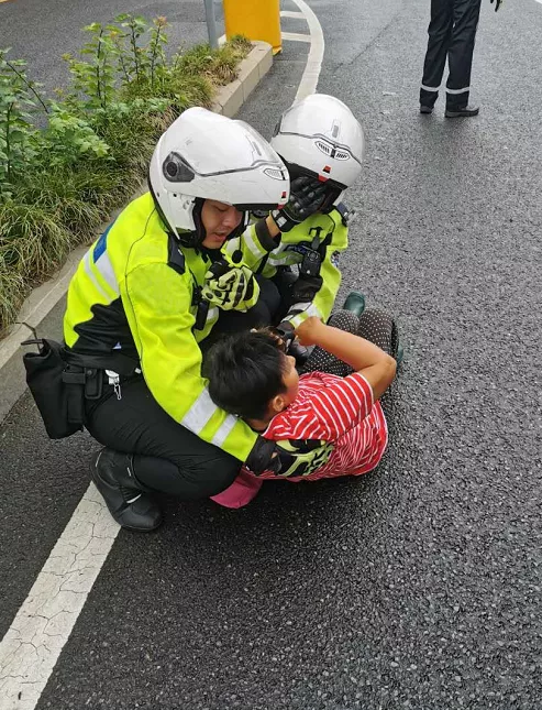 8月5日上午,深圳交警鐵騎巡邏至北環(huán)大道西往東方向珍珠嶺天橋路段輔道轉(zhuǎn)主道路口時(shí),發(fā)現(xiàn)一位老太太躺在路中間。