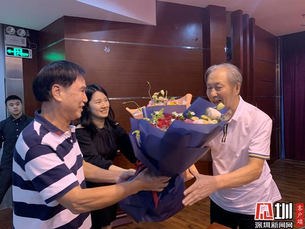 演講結(jié)束后,有不少居民現(xiàn)場分享自己的奮斗故事與對深圳的熱愛。在舞臺的另一邊有兩位聽眾上臺給蔣開儒老師送花?!啊洞禾斓墓适隆返墓适乱恢奔钪覀?,我是1984年來的深圳,看著深圳的起步和發(fā)展。今天親臨現(xiàn)場聽到蔣老師(蔣開儒)分享的人生經(jīng)歷,感覺特別有共鳴。相信春天的故事會延續(xù)下去,深圳將再創(chuàng)輝煌?!惫鹉緢@老年人協(xié)會會長徐紅光情緒激動地說道。