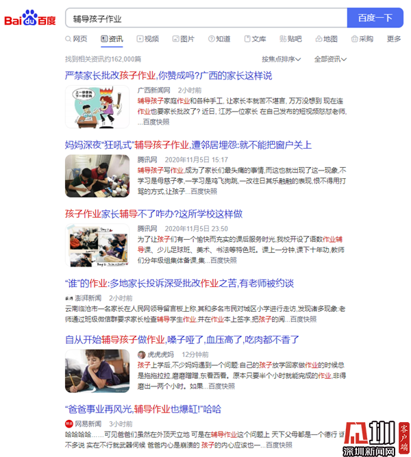 中國青少年研究中心家庭教育首席專家孫云曉介紹,全國婦聯(lián)的一項調(diào)查顯示,40%以上的家長覺得無力輔導孩子作業(yè)。家長們對此有多愁苦?百度搜索“輔導孩子作業(yè)”的資訊,彈出16.2萬篇文章,大部分是關(guān)于家長各種吐槽?!蹲鳂I(yè)把孩子難哭了,輔導作業(yè)把媽媽氣哭了,網(wǎng)友:太真實了》、《“爸爸事業(yè)再風光,輔導作業(yè)也爆缸!”》、《自從開始輔導孩子做作業(yè),嗓子啞了,血壓高了,吃肉都不香了》……一篇篇文章的標題,都是關(guān)于各位家長輔導孩子時的滿肚子苦水。