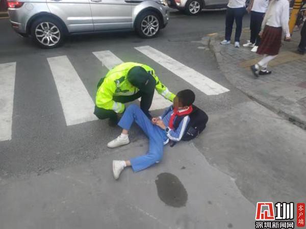 深圳新聞網訊(見圳客戶端、深圳新聞網記者 郭含笑 通訊員 黃佳佳 周妙君)11月16日下午17時許,羅湖交警大隊東湖中隊鐵騎四組在東曉路疏導交通時,看見前方路口竟躺著一抹“藍色”,走前一看,原來是一名小學生。此時,周圍的車輛來來往往,小男孩就四平八叉地平躺在馬路上,眼角還噙著淚水,對來往的車流全然不顧,情形十分危險。