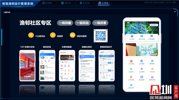 “智慧漁邨”的智慧之處在于其系統(tǒng)的建設(shè),融合了公安網(wǎng)、政務(wù)網(wǎng)、互聯(lián)網(wǎng),實(shí)現(xiàn)三網(wǎng)數(shù)據(jù)融合共享,同時(shí)系統(tǒng)還集成了區(qū)大分撥平臺(tái)、大數(shù)據(jù)平臺(tái)、視頻平臺(tái)的能力及資源,建成黨建、治理和服務(wù)三大板塊?!爸腔蹪O邨”系統(tǒng)以三維數(shù)字沙盤為底板,將社區(qū)關(guān)注的“人、事、物”等信息全部落圖,包括漁村121棟樓房,系統(tǒng)還接入了600多路消防感知設(shè)備、100多個(gè)水務(wù)傳感設(shè)備和38路公安視頻監(jiān)控,將智慧城市建設(shè)能力和數(shù)據(jù)資源全部下沉至社區(qū)。
