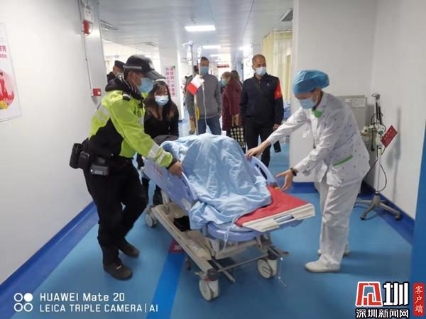 救護(hù)車輛到達(dá)深圳市人民醫(yī)院后,鐵騎隊員又協(xié)助醫(yī)護(hù)人員將傷者抬上擔(dān)架床,迅速送進(jìn)診療室進(jìn)行救治。
