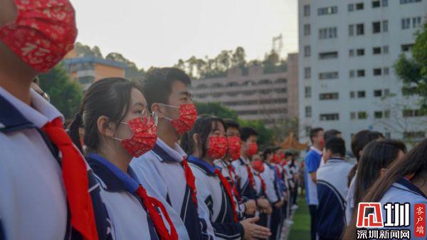 羅湖外語實驗學校的開學典禮上,全校師生戴著紅色福字口罩參加了活動,學校還給學生發(fā)放了開學大禮包。