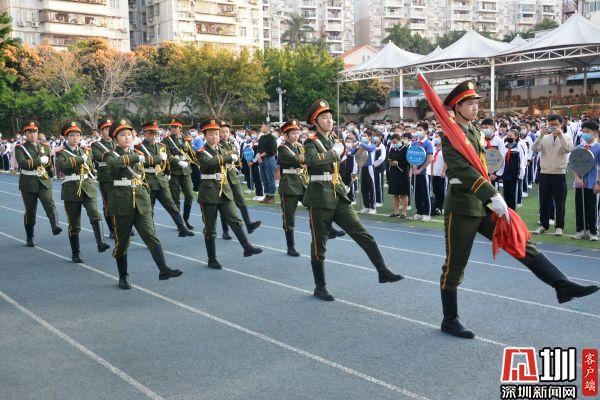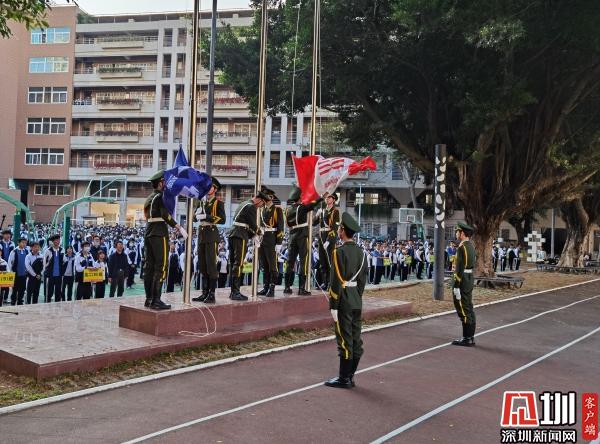 羅湖外國語學校初中部開學典禮上,校國旗班準備升旗。