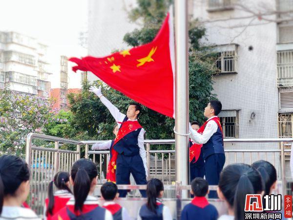 桂園小學開學典禮,“小升旗手”揚起大家最愛的“一抹紅”。