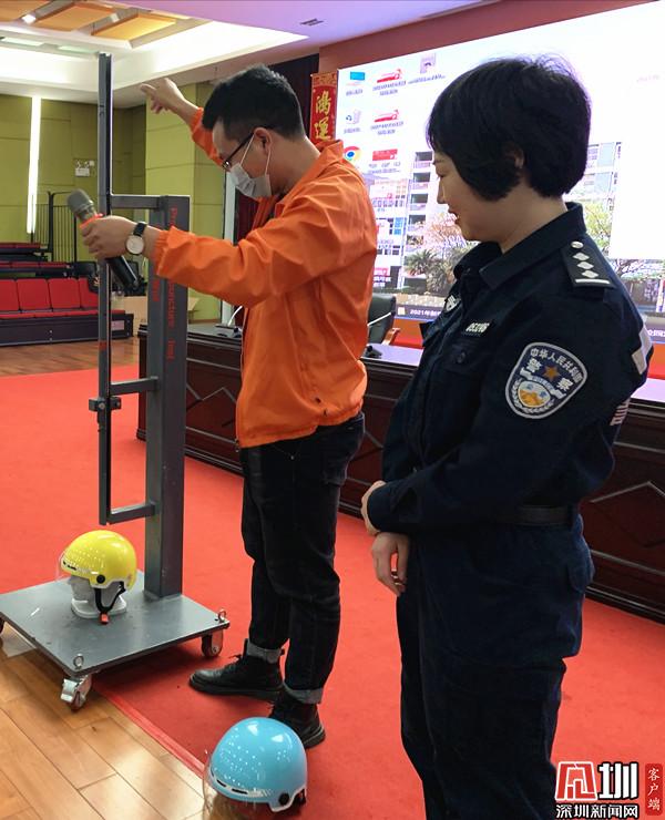 針對目前頭盔佩戴率的問題,羅湖交警充分調(diào)動社會資源,聯(lián)合深圳曉安頭盔公司,現(xiàn)場講解頭盔在事故中對頭部的保護作用,為同學們演示在重力撞擊的情況下,有頭盔保護和沒頭盔保護的不同結果,讓現(xiàn)場同學們親身感受到頭盔的重要意義,還免費向同學們贈送頭盔。