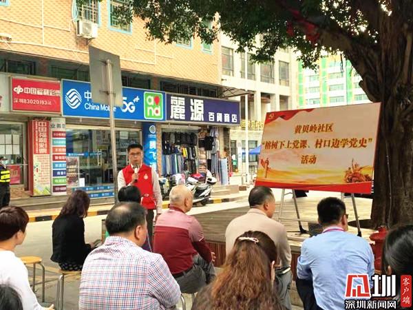 見圳客戶端·深圳新聞網(wǎng)3月12日訊(記者 郭含笑 通訊員 潘霈穎)為深入學(xué)習(xí)貫徹習(xí)近平總書記在黨史學(xué)習(xí)教育動員大會上的重要講話精神,全面貫徹落實(shí)黨中央、省委、市委、區(qū)委關(guān)于黨史學(xué)習(xí)教育的決策部署,深圳市羅湖區(qū)黃貝街道黃貝嶺社區(qū)于3月12日下午開展“榕樹下講黨課、村口邊學(xué)黨史”主題黨日活動。黃貝街道黨工委副書記、辦事處主任鐘遠(yuǎn)鋒以及轄區(qū)黨員、居民共30余人參與此次活動。