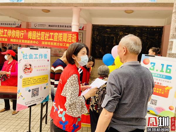 見圳客戶端· 深圳新聞網(wǎng)3月16日訊(記者 郭含笑 實(shí)習(xí)生 覃鈺清 通訊員 李珍鳳 張亮亮)為進(jìn)一步提高社會(huì)工作的影響力,樹立社會(huì)工作專業(yè)形象,3月16日下午,深圳市清水河街道梅園社區(qū)黨委、深圳市東西方社工服務(wù)社駐梅園社區(qū)黨群服務(wù)中心的社工開展了“幸福梅園 社工伴你同行”社工宣傳周活動(dòng)。