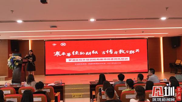 見圳客戶端·深圳新聞網(wǎng)3月17日訊(記者 郭含笑)為進(jìn)一步推進(jìn)校外培訓(xùn)機(jī)構(gòu)專項(xiàng)治理,加強(qiáng)學(xué)校師德師風(fēng)建設(shè),3月17日下午,深圳市羅湖區(qū)教育局開展校外培訓(xùn)機(jī)構(gòu)教師師德師風(fēng)培訓(xùn)會(huì)議與消防安全培訓(xùn)。羅湖區(qū)教育局工作人員、78所培訓(xùn)機(jī)構(gòu)法人、負(fù)責(zé)人及教師代表參加了此次會(huì)議。