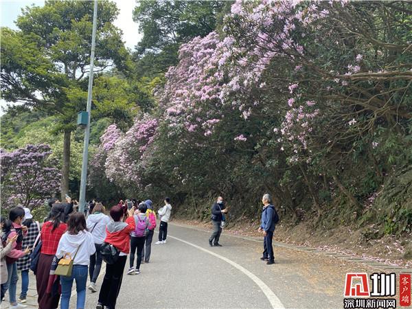 “大家平時有沒有來爬過梧桐山呢?你們知道梧桐山的最高峰是多少嗎?在梧桐山一共種植了多少毛棉杜鵑呢?”初入梧桐山,醫(yī)護人員們在游覽車上看著一路盛放的杜鵑,導賞員在旁向大家介紹梧桐山風景區(qū)的特色和花會盛況。據(jù)了解,3月18日至4月6日是深圳市梧桐山第六屆毛棉杜鵑花會,為進一步落實關愛抗疫醫(yī)護人員,羅湖面向抗疫一線醫(yī)護人員開設專場導賞,由梧桐山優(yōu)秀導賞員提供自然導賞,領略景區(qū)風光、認識沿途植物等,讓守在抗疫一線的白衣戰(zhàn)士領略最美的春光。