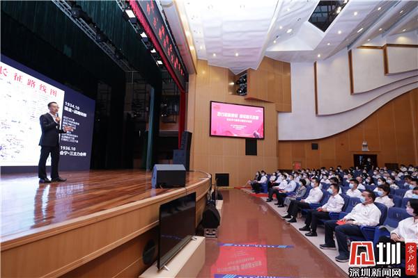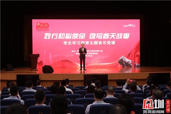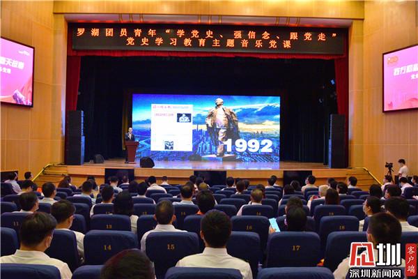 見圳客戶端·深圳新聞網(wǎng)4月2日訊(記者 李慧 通訊員 王舒琪)4月1日下午,羅湖青年相聚一堂,共同參加一場別開生面的沉浸式“學(xué)黨史、強(qiáng)信念、跟黨走”黨史學(xué)習(xí)教育主題音樂黨課。活動特邀了深圳廣電集團(tuán)廣播中心黨委委員劉洋用“藝術(shù)+黨史”的全新形式作主題講解。羅湖區(qū)委書記羅育德,區(qū)領(lǐng)導(dǎo)呂漫妮、李志榮、陳龍興、羅安娜,團(tuán)市委副書記賴鋒等出席了活動。