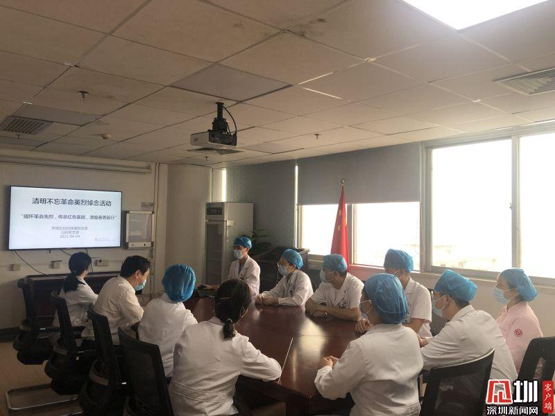 羅湖區(qū)中醫(yī)院臨床科室醫(yī)護人員在早交班時觀看《國家思念 — 清明祭英烈》紀念片。