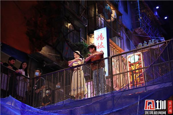 沿著新園路向前,就來到了羅湖東門商圈網紅打卡圣地:深圳文和友。舊舊的樓房加上復古牌匾,橋上的綠皮火車不時經過,讓人一秒穿越到上世紀九十年代......進入到深圳文和友的內部,復古港式、霓虹牌匾,隨手一拍都是港風大片。還有游戲廳、小吃街、市集、復古公交站、百貨店令人目不暇接....網紅茶飲茶顏悅色也在等著大家的到來。文和友內還有時長1小時的沉浸式戲劇——《綺夢》上演,演員表演張力十足,觀眾和演員距離僅1米,讓觀眾身臨其境。