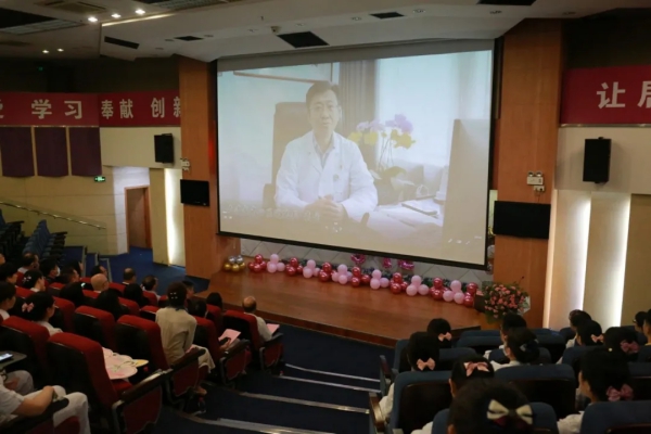大連市中心醫(yī)院袁宏院長現(xiàn)場發(fā)來視頻祝福,圍繞“做人、做護士、做天使”為中心思想的優(yōu)質護理服務理念,與在場的同仁們一起分享和探討心得感悟,并祝羅湖醫(yī)院的護理兄弟姐妹們節(jié)日快樂。