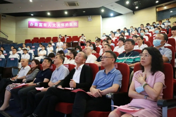 隨后,孫喜琢院長就醫(yī)院護理的現(xiàn)狀及未來護理的發(fā)展方向作出了展望。孫喜琢說:“從去年抗擊疫情到現(xiàn)在,已歷時一年多時間。我們一直沒有松懈。從口岸篩查、核酸采樣、疫苗接種……很多今天沒來參加活動的護士們正奮戰(zhàn)在40多個疫苗接種點。抗疫的同時,醫(yī)院日常的醫(yī)療工作還要正常展開,大家踐行著南丁格爾愛心、耐心、細心、責任心的護理精神完成了護理工作?!?/p>