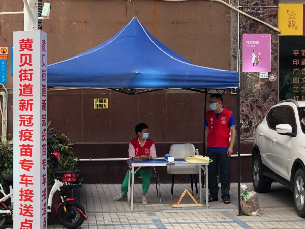 炎炎烈日,為貼心服務(wù)群眾,黃貝街道設(shè)立了接種新冠疫苗專車接送點(diǎn)。接送點(diǎn)的義工告訴記者,在戶外工作特別消耗水,一個上午就喝掉四五瓶飲用水,雖然準(zhǔn)備了防曬的雨棚,但路上的熱空氣卻躲不掉,一會兒下來也是大汗淋漓,不過能為群眾服務(wù),盡快建立全民免疫陣線,這份守候很值得。