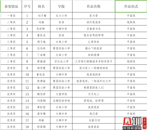 見圳客戶端·深圳新聞網(wǎng)2021年6月1日訊(記者 李慧)6月1日,羅湖區(qū)“家庭文明公益廣告”及“我家年度故事”征集活動獲獎名單公布,其中,18個(gè)“家庭文明公益廣告”和74個(gè)“年度故事”圖文作品獲獎。