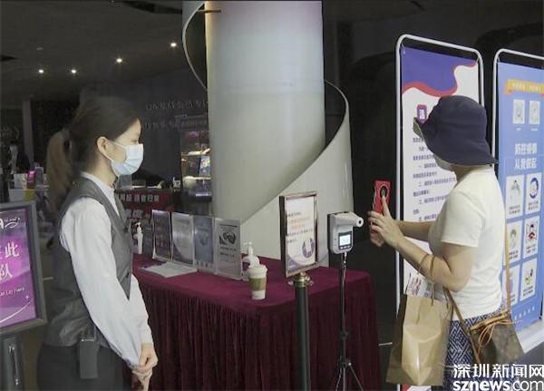 在直播鏡頭的另一邊,記者在羅湖UA影院看到,門口顯眼位置擺放了疫情防控宣傳板并設(shè)置了測溫登記臺,還配置了免洗洗手液等防疫物資,前來觀影的市民需出示綠碼,并進行測溫,方可進入影院。此外,影院工作人員的核酸檢測、疫苗接種數(shù)據(jù)都會記入臺賬。