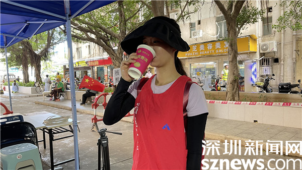 “目前全區(qū)大概有1.1萬名工作人員奮戰(zhàn)在社區(qū)、驛站防疫一線,他們無懼酷暑風(fēng)雨堅(jiān)守崗位,用汗水為疫情防控構(gòu)筑堅(jiān)實(shí)堡壘,羅湖區(qū)婦聯(lián)代表羅湖區(qū)社區(qū)小區(qū)組,積極聯(lián)系愛心企業(yè)瀾滄古茶集團(tuán),送上一杯陳皮茶,感謝他們的無私奉獻(xiàn),也希望他們保護(hù)好自己。”黃毓瓊對(duì)記者說。