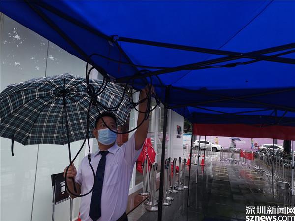 讀特客戶端·深圳新聞網(wǎng)2021年6月21日訊(記者 李慧)6月21日晚及6月22日一早,深圳雷雨交加,深圳市氣象臺(tái)2021年06月22日07時(shí)10分在多個(gè)區(qū)域發(fā)布暴雨紅色預(yù)警,羅湖也包括其中。有那么一群人,嚴(yán)陣以待、逆雨迎風(fēng),堅(jiān)守在抗疫一線。記者到各核酸檢測點(diǎn)看到,醫(yī)護(hù)人員和社區(qū)義工們?nèi)匀幻爸L(fēng)雨,堅(jiān)守在核酸采集的崗位上。