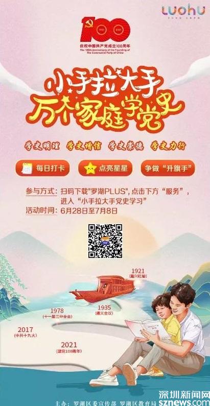 讀特客戶端·深圳新聞網(wǎng)2021年6月28日訊(記者 劉嘉敏 彭桂紅 通訊員 李瑩瑩)“七一”將至,為慶祝中國共產(chǎn)黨成立100周年,進(jìn)一步推動羅湖區(qū)黨史學(xué)習(xí)教育走深走實(shí),羅湖區(qū)委宣傳部聯(lián)合羅湖區(qū)教育局于6月28日在“羅湖Plus”客戶端正式推出“小手拉大手”萬個家庭學(xué)黨史活動。當(dāng)天,羅湖區(qū)委常委、宣傳部部長呂漫妮,羅湖區(qū)副區(qū)長、二級巡視員宋強(qiáng)等領(lǐng)導(dǎo)出席啟動儀式。