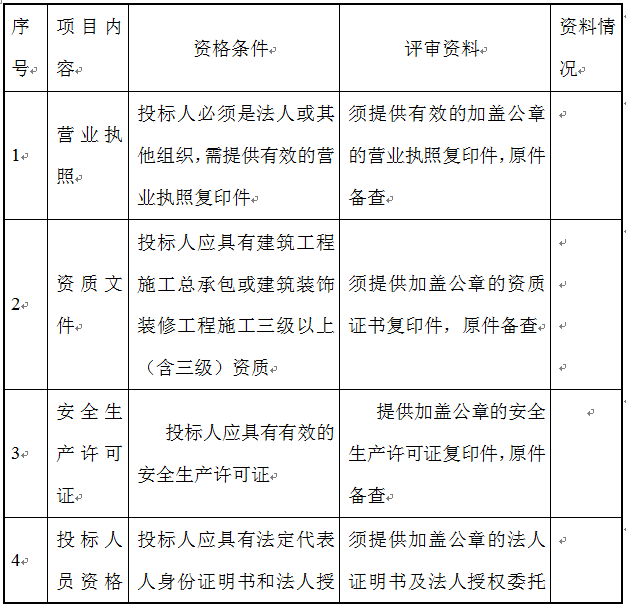 2.評議標(biāo)準(zhǔn)以招標(biāo)人和招標(biāo)機構(gòu)的意見為準(zhǔn);注:1.以上資格審查合格條件標(biāo)準(zhǔn)中如出現(xiàn)一處不符合要求,其投標(biāo)報名將不被接受;