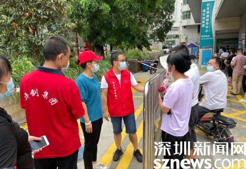 據(jù)了解,在本次疫情防控期間,羅湖區(qū)委下沉干部主要負(fù)責(zé)坭崗社區(qū)合圍各個(gè)卡口,他們每天忙于測(cè)溫、查驗(yàn)行程軌跡、查驗(yàn)健康碼、出入車輛管理、回應(yīng)居民咨詢,為坭崗社區(qū)筑造一條堅(jiān)實(shí)的防線。除此之外,來自深圳報(bào)業(yè)集團(tuán)的工作隊(duì)也堅(jiān)守在清水河街道社康。他們通過耐心地指引居民截取行程碼、健康碼,來維護(hù)現(xiàn)場(chǎng)秩序,引導(dǎo)居民接種疫苗。從早上7點(diǎn)到晚上10點(diǎn),甚至是12點(diǎn),他們都和社區(qū)工作者一樣,堅(jiān)守在疫情防控的第一道防線,為社區(qū)疫苗接種推進(jìn)工作提供了極大的幫助。這些下沉干部和工作隊(duì)也得到社康工作人員和周邊居民的點(diǎn)贊,清水河街道社康主任感嘆說:“下沉干部和工作隊(duì)的帥哥們真是給力啊!”