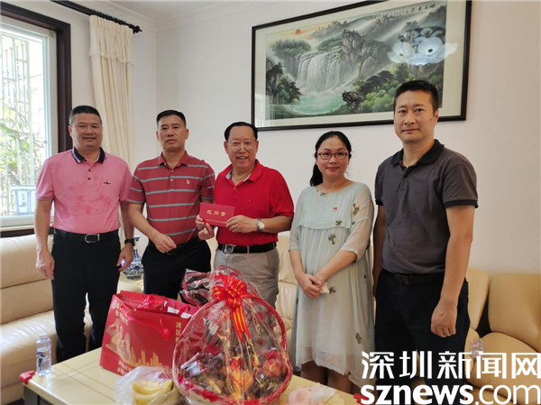 何紀(jì)文、黃大滿(mǎn)一行與何林親切交談,為他送上了水果、牛奶等慰問(wèn)品。何林與大家分享了他當(dāng)年參與深圳建設(shè)的“拓荒?!惫适?,作為第一批來(lái)深建設(shè)者,在憶起當(dāng)年這段默默耕耘的艱苦歲月時(shí),仍然是非常激動(dòng)。