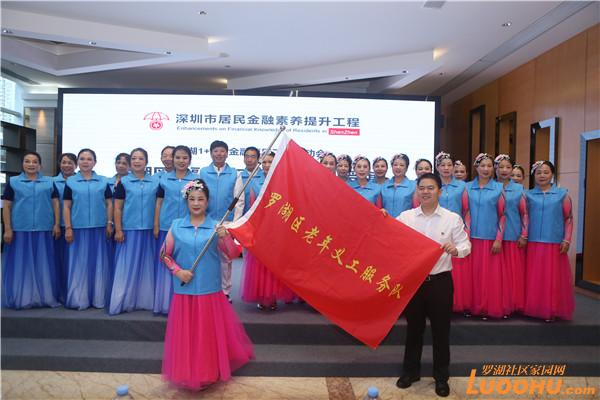 活動現(xiàn)場,翠竹街道辦事處、東門街道辦事處、桂園街道辦事處、筍崗街道辦事處等四家“百姓學(xué)金融”科普陣地獲授牌,平安銀行股份有限公司、國任財產(chǎn)保險股份有限公司、中信銀行國際(中國)有限公司、上海浦東發(fā)展銀行股份有限公司深圳分行、中國人壽財產(chǎn)保險股份有限公司深圳市分公司、渣打銀行(中國)有限公司深圳分行、星展銀行(中國)有限公司深圳分行、中國銀行深圳市分行東門支行、中國農(nóng)業(yè)銀行深圳國貿(mào)支行、中國建設(shè)銀行深圳羅湖支行、交通銀行深圳羅湖支行等11家金融機構(gòu)獲授“金融社會服務(wù)天團”,他們將一如既往擔(dān)當(dāng)“金融安全守護(hù)者”,幫助市民防范各類金融類詐騙陷阱;東縱合唱團、深圳市羅湖區(qū)老年人協(xié)會作為老年義工服務(wù)隊獲授旗。