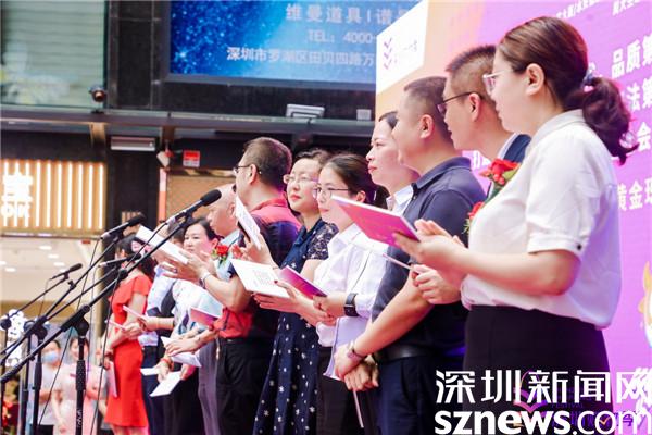 隨后,水貝萬山珠寶文化產業(yè)園總經(jīng)理陳曄平、金展珠寶廣場招商運營總監(jiān)王琳琳、特力珠寶大廈運營總經(jīng)理崔戰(zhàn)紅、水貝金座運營中心總監(jiān)趙麗、水貝國際中心運營總監(jiān)廖燦榮等交易中心代表,以及周六福珠寶總經(jīng)理謝明育、周大生珠寶行政副總經(jīng)理周洪生、金大福珠寶副總裁丘航等珠寶品牌代表一同上臺宣誓,表達展示特色、推廣品牌、促進消費、助推增長的決心。