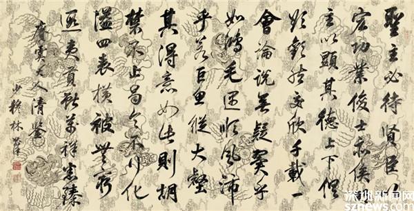 在預(yù)展現(xiàn)場(chǎng),一件雍正帝“積善成德”緙絲引起現(xiàn)場(chǎng)嘉賓的注意,此作為雍正寫完后“積善成德”四字后,命宮廷江南織造將其做成了一件緙絲,工藝尤為珍貴。緙絲又稱“刻絲”,以通經(jīng)斷緯技法織造,工藝獨(dú)特,非具有高度熟練的技巧和藝術(shù)造詣不能勝任。乾隆帝行書御筆節(jié)錄《快雪堂記》,將此記刻于快雪堂刻石之首。此記,除詳述獲得此帖之經(jīng)過(guò)外,又道明《快雪堂法帖》由來(lái),因第一卷首刻王羲之《快雪時(shí)晴帖》,故名。此記為行書,寫得自然流暢,毫無(wú)做作之態(tài),雖揮灑自如卻絕無(wú)草率之感,可見乾隆書法功底之深。