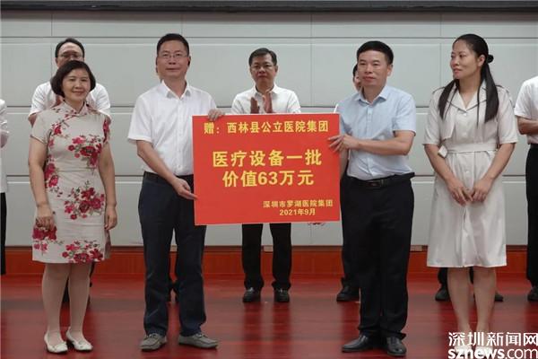 鄉(xiāng)村振興,關(guān)鍵在人,醫(yī)療和教育等基礎(chǔ)設(shè)施同樣起不可或缺的作用。此次考察中,羅湖區(qū)向西林縣人民醫(yī)院捐贈了一批醫(yī)療設(shè)備。據(jù)了解,自2017年對口幫扶西林縣以來,羅湖區(qū)共派出8批醫(yī)療隊(duì)、92人次駐點(diǎn)西林縣各醫(yī)療衛(wèi)生單位,累計(jì)捐贈價(jià)值約1000萬元的醫(yī)療儀器和設(shè)備,充分保障了地方百姓的醫(yī)療需求,推動了西林縣公立醫(yī)院集團(tuán)的發(fā)展。