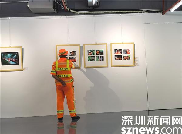 在羅湖美術(shù)館開展的第一天,王林泉就特意前去觀展,他是這次入展攝影類作品的作者之一,在與工作人員分享他攝影的作品《平凡的“戰(zhàn)疫”英雄》時(shí)還十分感慨:“這組圖是2020年2月份拍攝的,當(dāng)時(shí)新冠疫情十分嚴(yán)峻,拍攝時(shí)我問其中一名環(huán)衛(wèi)工人怕不怕?他說不怕是假的,但這些活兒也必須有人做。令我印象十分深刻。”