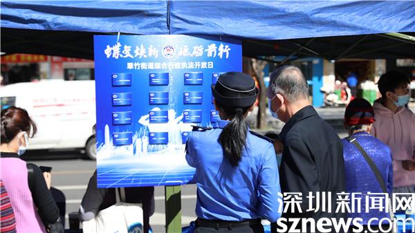 讀特客戶端·深圳新聞網(wǎng)2021年11月10日訊(記者 李慧 通訊員 范楚云)11月9日,以“蝶變煥新,砥礪前行”為主題的翠竹街道綜合行政執(zhí)法開放日活動(dòng)在田貝二路金翠園廣場(chǎng)舉行?;顒?dòng)現(xiàn)場(chǎng)設(shè)置工作成果展示區(qū)、風(fēng)采展示區(qū)、互動(dòng)宣傳區(qū)三大區(qū)域,通過好玩有趣的互動(dòng)方式,以老百姓喜聞樂見的方式拉近與市民之間的距離,展示翠竹街道城管執(zhí)法人親民務(wù)實(shí)的嶄新形象。
