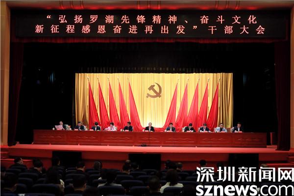 讀特客戶端·深圳新聞網(wǎng)2021年11月14日訊(記者 李慧 通訊員 許舜鈿)11月12日下午,羅湖區(qū)召開(kāi)“弘揚(yáng)羅湖先鋒精神、奮斗文化新征程感恩奮進(jìn)再出發(fā)”干部大會(huì)暨2021年羅湖區(qū)處級(jí)干部任職培訓(xùn)班動(dòng)員大會(huì)。羅湖區(qū)委書記劉勝,區(qū)委副書記、區(qū)長(zhǎng)范德繁,區(qū)人大常委會(huì)主任周益川等區(qū)四套班子領(lǐng)導(dǎo)出席會(huì)議。各單位副處級(jí)以上領(lǐng)導(dǎo)職務(wù)干部,駐區(qū)有關(guān)單位主要負(fù)責(zé)干部,區(qū)2021年處級(jí)干部培訓(xùn)班學(xué)員以及區(qū)屬企業(yè)主要負(fù)責(zé)人參加會(huì)議。