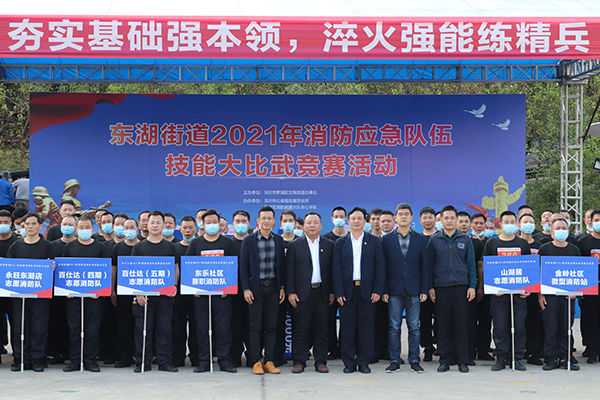 讀特客戶端·深圳新聞網(wǎng)2021年11月25日訊(記者 邱婕 通訊員 范漢林)為夯實幸福街區(qū),生態(tài)東湖基礎(chǔ),營造安全有序的居住環(huán)境,切實增強(qiáng)轄區(qū)居民群眾的獲得感、幸福感和安全感,11月25日,東湖街道在翠湖公園廣場舉行“2021年消防應(yīng)急隊伍技能大比武競賽活動”。區(qū)消防救援大隊副大隊長胡巒,街道黨工委副書記、人大工委主任謝統(tǒng)敏,街道黨工委委員、辦事處副主任、應(yīng)急管理辦主任方海峰,街道黨工委委員、城市建設(shè)辦主任楊曉明,街道辦事處副主任、綜合行政執(zhí)法辦主任李旭,東湖派出所副所長張金偉等領(lǐng)導(dǎo)和街道相關(guān)業(yè)務(wù)部門、社區(qū)工作站、各物業(yè)管理小區(qū)及兼職消防隊伍等相關(guān)人員參加了活動。街道轄區(qū)各物業(yè)管理單位、村股份公司及轄區(qū)重點企業(yè)26支應(yīng)急消防隊伍,共230余名隊員參加了比賽。