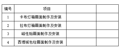 二、項(xiàng)目概況:本次大媒體廣告制作、安裝服務(wù)采購(gòu)項(xiàng)目進(jìn)行制作、安裝單位供應(yīng)商的招標(biāo),歡迎符合資格的單位參加投標(biāo)。采購(gòu)范圍見(jiàn)下表: