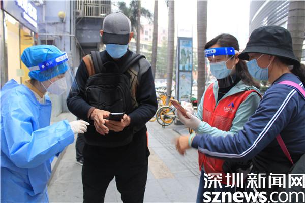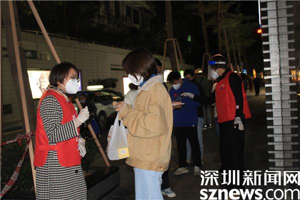 “楊妹,我來了,還帶來了一個(gè)人。”13日晚,正在羅湖區(qū)桂園街道老圍社區(qū)禧程酒店核酸檢測點(diǎn)忙碌的社工楊女士,接到志愿者溫寶珍的電話。溫寶珍從“0107疫情”開始以來,每天都在核酸檢測點(diǎn)協(xié)助核酸檢測,這晚她把自己的兒媳婦吳永霞也帶來了。“婆婆剛從其他社區(qū)的核酸檢測點(diǎn)做完義工回來,聽說老圍社區(qū)需要人,放下飯碗就來了。婆婆這么大年紀(jì)了還沖在前面,我做兒媳婦的,怎么也要向婆婆學(xué)習(xí)啊?!眳怯老紝?duì)社工說?!皯?yīng)該的應(yīng)該的,疫情當(dāng)前,每個(gè)人都有義務(wù)出來與病毒作戰(zhàn),光是靠社區(qū)工作者不行,他們太累了?!睖貙氄溥呎f邊幫兒媳穿好義工服,把粵核酸的二維碼交給兒媳,并教兒媳如何在手機(jī)上查驗(yàn)。