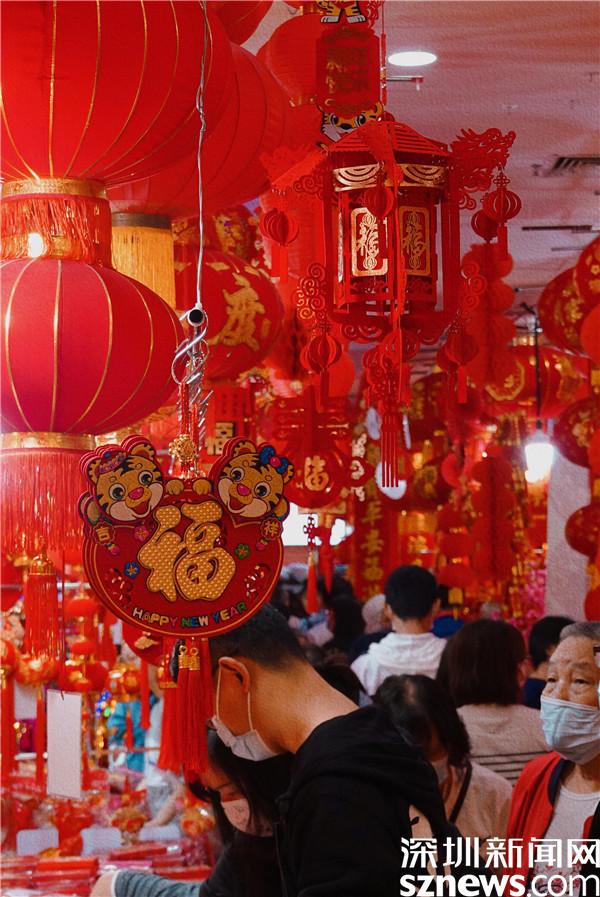 大紅燈籠高高掛起,來往的市民駐足,在滿目的年味中,挑選心儀的新年裝飾。