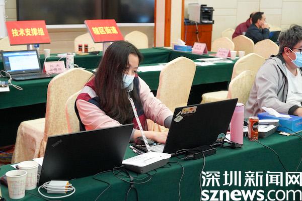 羅湖區(qū)流調(diào)前線指揮部辦公點(diǎn)位于藝嘉國(guó)際大酒店,進(jìn)入指揮部,記者就看到一片忙碌的景象,每個(gè)工作人員面前一臺(tái)筆記本電腦,鍵盤敲擊、接打電話的聲音不斷傳來(lái)。