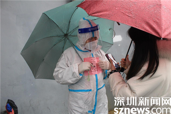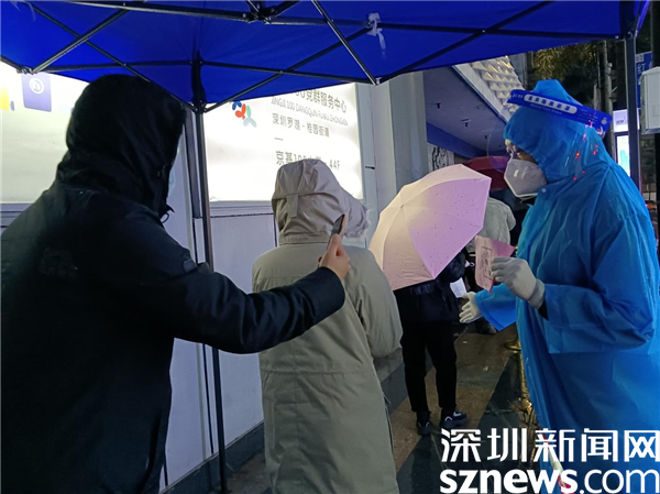 讀特客戶端·深圳新聞網(wǎng)2022年2月24日訊(記者 劉嘉敏 通訊員 楊紀(jì)歐)雖然這幾天的冷風(fēng)冷雨一直不停,氣氛低至6度,但深圳市羅湖區(qū)桂園街道老圍社區(qū)設(shè)在各處的核酸檢測點(diǎn)一直在有序進(jìn)行著。人們打著雨傘排隊,社區(qū)工作人員和志愿者高效地引導(dǎo),讓等候的人快速地采樣,協(xié)助不會操作的人出示粵核酸碼。工作人員的手腳都凍僵了,但沒有人退縮,用自己的“凍”起來,守護(hù)著深圳人的綠碼,捍衛(wèi)著社區(qū)的平安。
