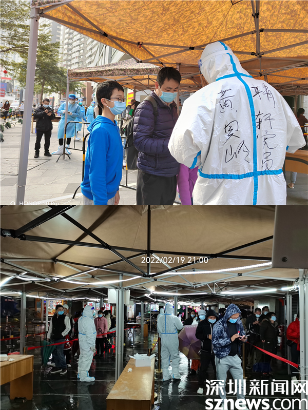 自今年“0107”疫情發(fā)生以來(lái),洪天飛就成了休息“絕緣體”——除完成南粵家政的日常工作外,其余時(shí)間都當(dāng)起了志愿者,積極參與社區(qū)疫情防控工作,甚至春節(jié)期間也主動(dòng)放棄假期、放棄與家人團(tuán)聚時(shí)光,把團(tuán)聚轉(zhuǎn)移到了防疫一線,和社區(qū)工作人員一起起早貪黑,一起經(jīng)歷風(fēng)雨寒凍,一起應(yīng)急出動(dòng),從核酸采樣點(diǎn)布置場(chǎng)地、維持現(xiàn)場(chǎng)秩序、引導(dǎo)掃碼到上門“掃樓”收集住戶信息等工作中,處處可見(jiàn)他的身影。