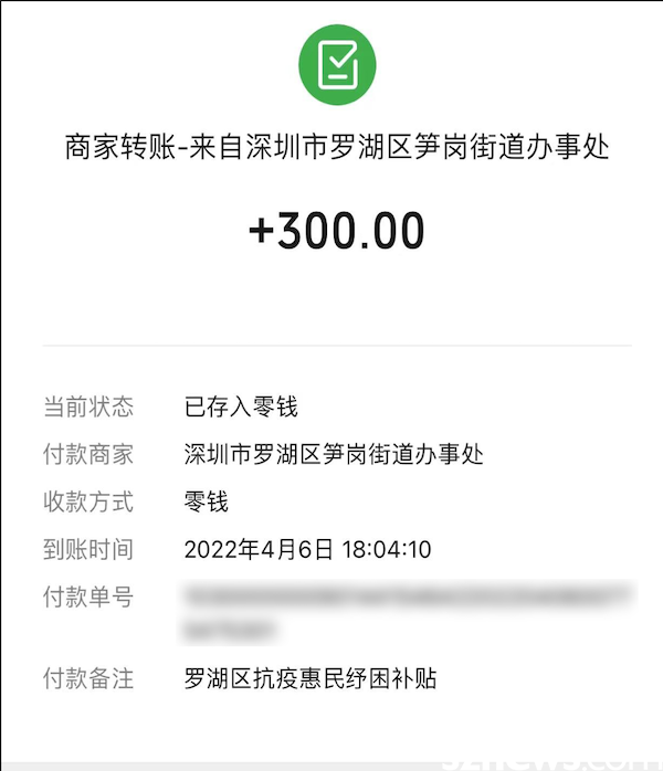 甘心是一名上班族,一家三口在筍崗村居住了5年多。今天下午,他在社區(qū)微信群看到了申領(lǐng)補(bǔ)貼小程序的鏈接,就點(diǎn)了進(jìn)去。只要填姓名,選擇住在哪里,掃描人臉識(shí)別,就完成了申請(qǐng),過程不到1分鐘。“我5點(diǎn)多申請(qǐng)的,6點(diǎn)多就拿到了補(bǔ)貼。這太快了!我還以為要審核好幾天呢!”6點(diǎn)多,他收到了一筆來自筍崗街道辦事處的轉(zhuǎn)賬。300元零錢直接存入了他的微信錢包?!疤@喜了,我還沒有想好怎么花?!备市谋硎?,以微信形式發(fā)放補(bǔ)助對(duì)居民消費(fèi)非常便利,計(jì)劃把這筆錢用于家庭花銷。