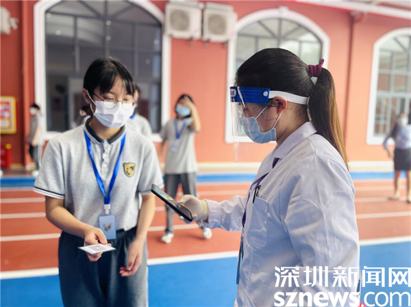 在深圳市諾思外語實驗學(xué)校檢測現(xiàn)場,學(xué)生們在老師的組織下有序排隊進行核酸檢測,嚴(yán)格執(zhí)行一米安全線排隊。各班級還準(zhǔn)備了定制姓名的紅色心動氣球、特別定制的核酸檢測卡......班主任和老師們?yōu)閷W(xué)生們準(zhǔn)備了許多的驚喜,讓學(xué)生感受到回歸校園和班集體的溫暖與快樂。