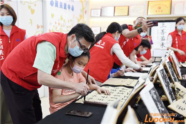 在“星星學(xué)堂”助教課堂上,張楠偶爾還當(dāng)上“小老師”,教孩子們書法。