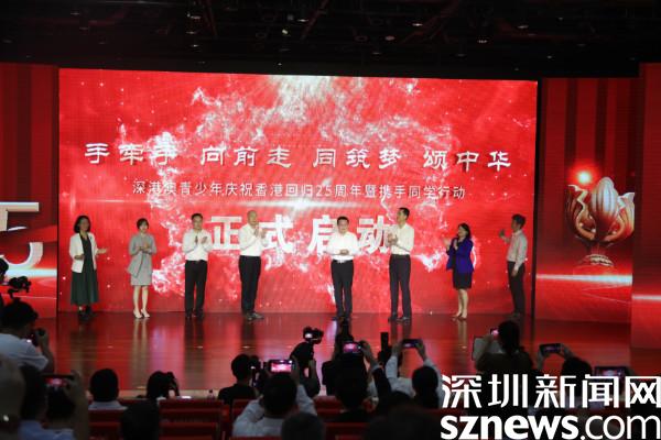 香港教育局局長楊潤雄,澳門教育及青年發(fā)展局副局長黃嘉祺,深圳市委教育工委副書記、市教育局黨組成員楊平分別致辭,充分肯定了攜手同學行動對深港澳文化交流的貢獻,并希望未來三地能有更加深入、密切的聯(lián)系,互惠雙贏,切實增強深港澳青少年的民族自豪感和凝聚力。隨后,領導與港澳青年代表上臺啟動深港澳青少年慶祝香港回歸25周年系列活動。