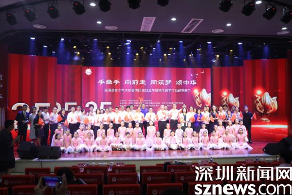讀特客戶端·深圳新聞網(wǎng)2022年5月25日訊(記者 謝秋平 通訊員 周文干)5月25日下午,由深圳市教育局、深圳海外聯(lián)誼會主辦,深圳市羅湖區(qū)教育局、深圳羅湖海外聯(lián)誼會、深圳市羅湖區(qū)教育科學研究院承辦,香港深圳青年總會、深圳工程師聯(lián)合會、深圳市羅湖中學協(xié)辦的“深港澳青少年慶祝香港回歸25周年暨攜手同學行動成果展”在深圳市羅湖中學舉行。活動以“手牽手,向前走,同筑夢,頌中華”為主題,展示了深港澳少年攜手同學行動的系列成果。深圳市委統(tǒng)戰(zhàn)部二級巡視員周文軍,深圳市委教育工委副書記、市教育局黨組成員楊平,羅湖區(qū)委常委、統(tǒng)戰(zhàn)部部長黃劍峰參加活動,香港教育局局長楊潤雄、澳門教育及青年發(fā)展局副局長黃嘉祺通過網(wǎng)絡連線方式參與活動?;顒釉诹_湖教育云平臺全程直播,深港澳三地100多所學校通過線上直播觀看。